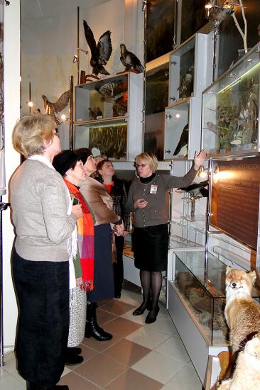 Наша группа с интересом рассматривала экспозицию музея: косуля, лосёнок, рысь (кстати, отловленная в лесах Россонщины); птицы, большие и маленькие, насекомые, заморские и белорусские, бивни буйвола и кости мамонта. Мы с удовольствием фотографируемся с чучелами животных, рассматриваем экспонаты и расспрашиваем экскурсовода об истории появления того или иного экспоната и… спешим в следующий музей.