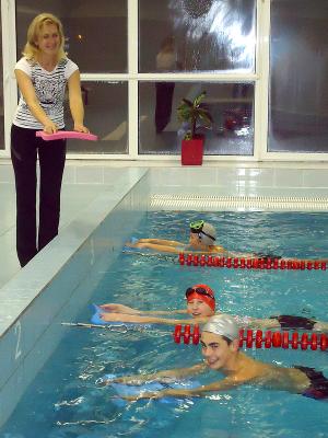 Практически целый день работает на физкультурном комлексе Гундега Тихинькая. Она – инструктор-методист бассейна, а также тренер по плаванию. С удовольствием ходят к ней на занятия и шестилетние малыши, и взрослые. Ещё продолжается набор в группы обучения плаванию и у Ольги Лавицкой, Виктора Костюченко, . Так что спешите покупать абонементы!