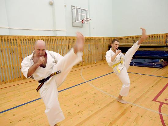 Отмечу, что своим рождением на Россонщине такой вид боевого искусства, как карате, обязан жителю райцентра  Андрею Приходовскому. Именно он самостоятельно начинал тренироваться на ФОКе и сплотил вокруг себя группу единомышленников. Затем обратился в Белорусскую федерацию Киокушинкай (карате-до – контактный стиль), которая, в свою очередь, прислала в Россоны настоящего мастера (сэнсэя), обладателя 3 дана чёрного пояса (таких только три в республике). Сейчас Андрей Вениаминович обучает россонских мальчишек не только владению приёмами карате в условиях реального боя, но и целой восточной философии, которая помогает быть в гармонии душе и телу. В целом тренер из Новополоцка доволен условиями для занятий, физкультурным комплексом.  Единственное, чем немало удивлён – отсутствием интереса к боевым искусствам у юношей. Его воспитанники – мальчики от 6 до 10 лет. «А ведь именно с 12-13 лет начинает приходить понимание смысла того, для чего живёшь, чем занимаешься, кем станешь в жизни, – говорит Андрей Кузнецов. – Поэтому буду рад, если на тренировки станут ходить именно подростки и юноши.» С мастером приезжают его ученики – Евгений Завадский, Александр Нелин.  Евгений – член команды города Новополоцка по Киокушинкай карате-до, в составе сборной в сентябре занял 3 место на республиканских соревнованиях в Гомеле. Александр имеет 1 дан чёрного пояса, является чемпионом Республики Беларусь в среднем весе. В течение полутора часов, после тщательной разминки, юные каратисты осваивают приёмы, прислушиваясь к своему учителю и приближаясь к японской школе Киокушинкай. Кстати, самому младшему ученику Андрея Вениаминовича 5 лет, самому старшему – 54 года (Новополоцк), есть среди воспитанников и девочки, девушки.