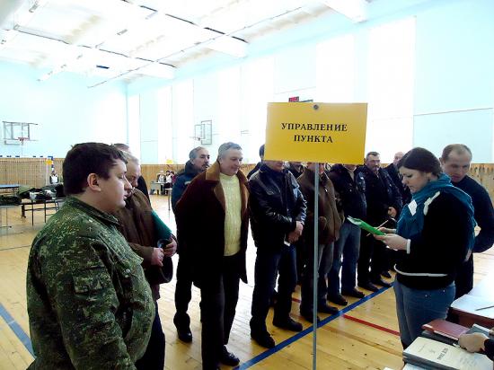 В ходе тренировочных учений определенное количество личного состава, призываемого из запаса, прошло весь комплекс мероприятий на пункте приема (ФСК «Старт») – оформление приёма и распределения в соответствии со штатными должностями, переодевание в военную форму, получение средств индивидуальной защиты, отбытие к местам дислокации.
