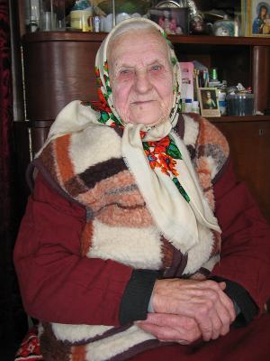 – Прывязіце вы мне ногі! – смяецца бабуля. – Так баляць, сіл няма, старыя адсекчы б, а новыя прымацаваць. А то толькі «конь» і ратуе (гэтак Валянціна Якаўлеўна называе свой кій, на які ўвесь час прыходзіцца абапірацца). Ды вы праходзьце ў другую палову хаты. Можа, прагаладаліся з дарогі? Дык гэта мы хутка выправім! А то і сто грамаў нальём.