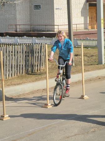 улице развернулись состязания, пожалуй, по самому сложному этапу конкурса – «Фигурное вождение велосипеда». Здесь участники преодолевают трассу как минимум из 10 элементов фигурного вождения велосипеда.