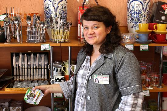 І менавіта яна карыстаецца найбольшым попытам. Пра гэта сведчыць і тое, што ў пакупніках няма недахопу. Толькі станоўчыя водгукі можна пачуць наконт добрушскага фарфору, вырабаў з пластмасы вытворчасці “Палессе”, “Інвед”, “Барысаўская пластмаса”. Асартымент багаты – бочкі і пакеты для засолкі, салатнікі, мерныя кубкі, наборы посуду і інш. Усё гэта “разыходзіцца” штодзённа і не залежваецца на паліцах.