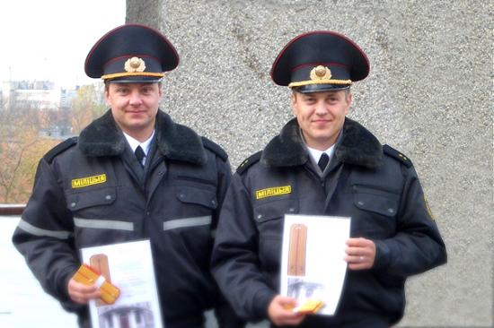 В торжественной обстановке начальник управления внутренних дел Витебского облисполкома генерал-майор милиции Игорь Владимирович Евсеев вручил погоны младшего лейтенанта и лейтенанта милиции ребятам, на плечах которых в ближайшем будущем будет лежать ответственность за соблюдение законности и правопорядка на территории Витебской области. В их число вошли оперуполномоченный отделения уголовного розыска криминальной милиции и участковый инспектор отделения охраны правопорядка и профилактики милиции общественной безопасности Россонского РОВД Игорь Владимирович Прохоров и Александр Александрович Герасименко. Игорь Владимирович пожелал всем молодым сотрудникам оставаться верными Отечеству и, служа закону, действительно служить народу. Ведь наряду со званием повышается и ответственность.
