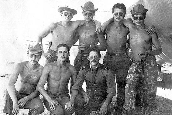 Александр Богдановский ( третий слева направо) с друзьями: Сергеем Панкратовым из Пскова, Сергеем Давыдовым из Самарканда и Володей Сальниковым из Выборга (слева направо). Александр Богдановский прошёл отбор, и 10 января 1980 года вместе с другими ребятами из военной части его отправили поездом из Мурманска в сторону границы.
