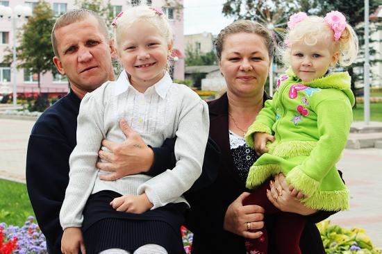 У Алеси и Олега Гущенко из Россон две дочери – семилетняя Даша и двухлетняя Варя. Семье 11 лет, познакомились в Россонах, через полгода поженились. О детях думали сразу. Благодаря помощи государства смогли построить двухкомнатную квартиру в райцентре. Оба трудятся в лесхозе: жена – заместителем директора по идеологической работе, а муж – станочником деревообрабатывающего цеха.
