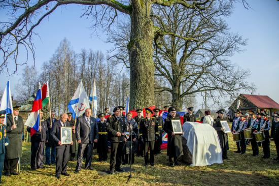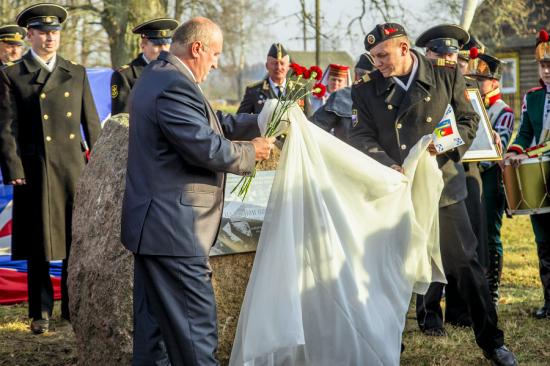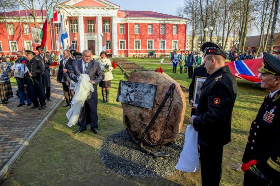 Кульминацией данного мероприятия стало открытие мемориальной доски. Это право предоставили председателю Россонского райисполкома Александру Шубскому и руководителю общественно-патриотического движения «Морское братство – нерушимо» Арсению Крицкому. К памятному знаку участники акции возложили цветы.