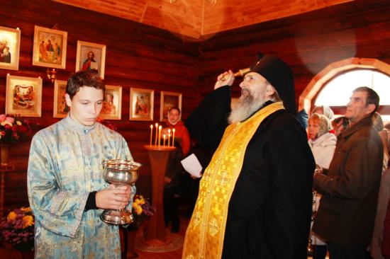Затем был совершён краткий молебен освящения часовни. Архиепископ окропил святой водой как стены маленького храма и церковную утварь, так и всех присутствующих.