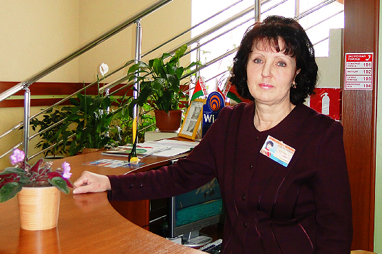 Галина Александровна Савицкая (на снимке) – старшая горничная гостиницы «Россоны» УП ЖКХ – в сфере гостеприимства работает только 5 лет, но сумела себя зарекомендовать как очень способный к этой деятельности сотрудник.