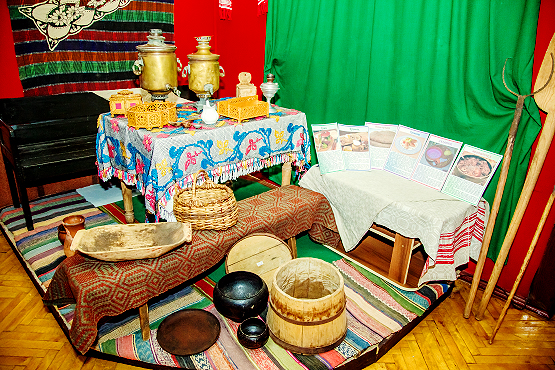 Современные кухонная утварь и электрические приборы, которые значительно упрощают процесс приготовления пищи, прочно вошли в нашу жизнь. Сегодня, например, немногие знают, что такое «дзяжа» или «вілачнік». Для того чтобы познакомить и более подробно рассказать о быте, в том числе о кухонной посуде и традиционных народных блюдах белорусов, в музее боевого содружества открылась выставка «Традыцыі беларускай кухні».