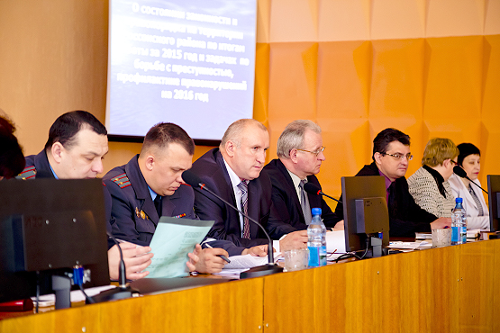 Выступая перед присутствующими, прокурор района Василий Николаевич Парусов отметил, что в районе наблюдается снижение уровня преступности на протяжении нескольких прошедших лет. Так, количество зарегистрированных преступлений в районе в 2015 году сократилось по линии всех служб с 77 до 76. В то же время по линии уголовного розыска возросло количество преступлений – с 41 до 43. При этом количество тяжких и особо тяжких преступлений по линии уголовного розыска сократилось с 8 до 4, т.е. на 50 процентов. Уровень преступности в районе ниже среднеобластного – 76,6 и 94,3 процента соответственно.