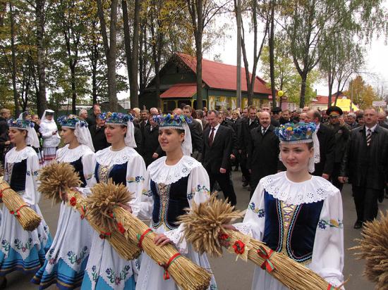 Абноўленыя Расоны, як сталіца абласнога свята працаўнікоў вёскі «Дажынкі –2010», у час урачыстасцяў прынялі каля 1000 членаў афіцыйных дэлегацый з усіх рэгіёнаў Віцебшчыны і, як мінімум, столькі ж удзельнікаў і гасцей. Але галоўнымі дзеючымі асобамі гэтага грандыёзнага свята, як павялося яшчэ ў нашых продкаў, былі людзі, «чые рукі пахнуць хлебам» – лепшыя земляробы Прыдзвіння. Ім ад усіх нас паклон і шчырая ўдзячнасць! Сонечна-жоўты – колер жытнёвага поля. Менавіта ён у большай ступені запаўняў прастору свята: гандлёвыя палаткі, вырабы майстроў з саломкі, падрумяненыя караваі і нават восеньскае лісцё пад нагамі нагадвалі пра цяжкую, але такую неабходную працу хлебароба.