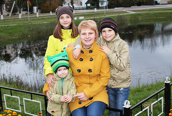 Трудно было с первым и вторым, а третий ребёнок – это наша «игрушка». Лера с Сашей во многом помогают, всегда могу на них положиться. Да и муж у меня – надежда и опора, он главный и строгий воспитатель, пример для мальчишек и защита для нас. В силу своей работы (он инспектор дорожно-патрульной службы отделения ГАИ Россонского РОВД) дома бывает не очень часто. специфика работы такова, но его помощь и поддержка очень ощутимы для нас.