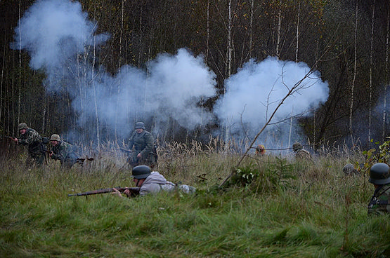 Масштабная реконструкция, посвящённая Дню танкиста, состоялась 10-11 сентября в Подмосковье, а именно на территории  Центрального музея бронетанкового вооружения и техники в Кубинке. Зрители мероприятия смогли наблюдать эпизод боя между танками Красной Армии и Вермахта. Часть техники – времён Великой Отечественной войны. Всё было очень натурально и органично: грязь, дождь, взрывы, колючая проволока, повсюду разбросанные гильзы, торчащие из земли колья…