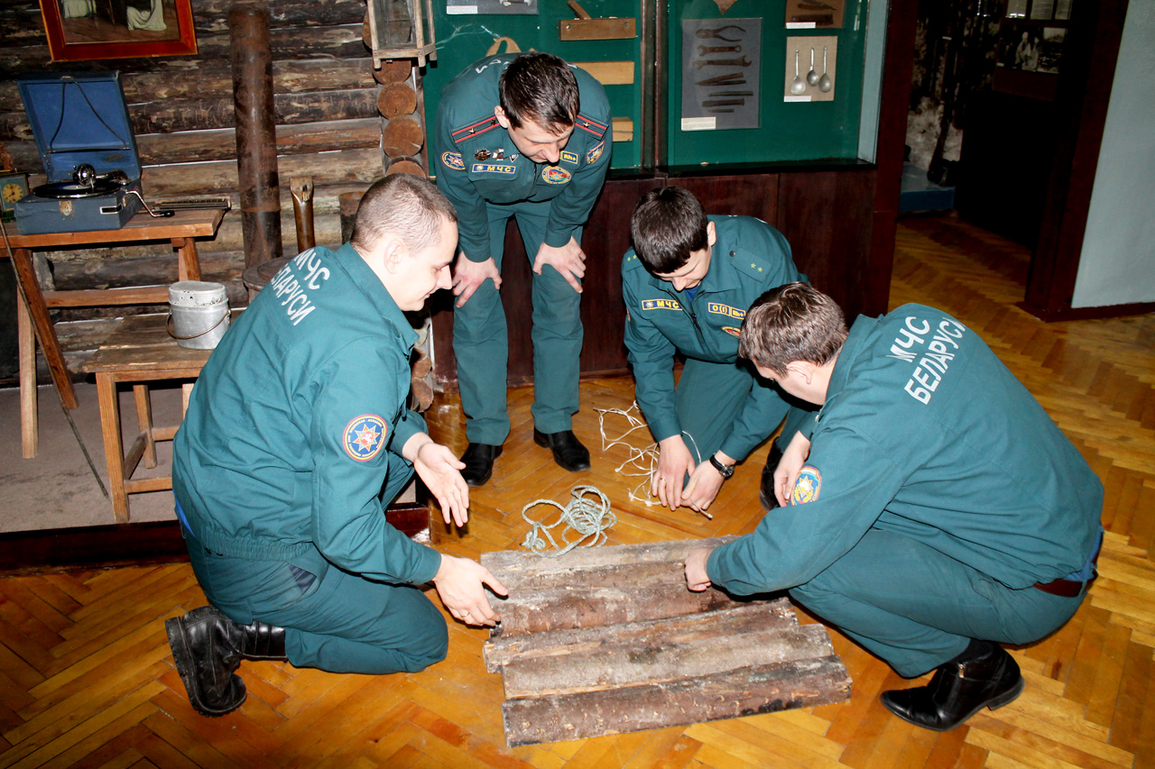Именно такой нетрадиционный формат знакомства с учреждением культуры вызвал особый интерес у посетителей музея. Поэтому в завершение Недели памяти патриотическая игра объединила иностранных студентов Витебского ВУЗа и сотрудников РОЧС, которые принимают активное участие в патриотических мероприятиях, проводимых в музее. Разделённые на две команды, они вместе повторили дорогу партизан и воссоздали основные этапы Бениславской операции. Команду Россонского района представили диспетчеры РОЧС Сергей Зубко и Александр Подвительский, начальник поста Вадим Чумаков и инспектор ИКиКО Андрей Пушкарёв.