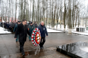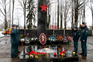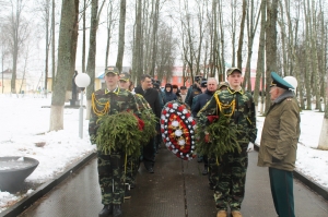 Мемориальный сквер в райцентре, где покоится прах более 2 000 советских воинов, партизан и мирных жителей, ставших жертвами фашистской агрессии, – святое место для каждого россонца. Именно туда шествием под звуки праздничного марша 23 февраля прошли представители районного исполнительного комитета, районного Совета депутатов, трудовых коллективов, учащиеся Россонской средней школы, члены команды «Звезда», неоднократного победителя областного и дипломанта республиканского этапов военно-спортивной игры «Зарница», жители городского посёлка. Под оружейные залпы они возложили к памятнику венки, хвойные гирлянды и живые цветы. Несколько минут в тишине как дань памяти погибшим защитникам Отечества, и все направились в районный Центр культуры и народного творчества на праздничную тематическую программу.