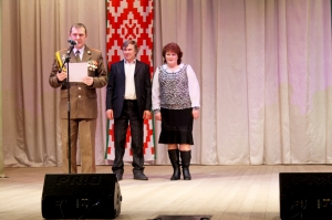 Затем ведущая вечера попросила подняться на сцену Татьяну и Николая АнцЕн (на снимке). Они по праву могут гордиться своим сыном Геннадием, который проходит срочную службу в г. Полоцке. От имени командования войсковой части 32404 Сергей Леонович вручил родителям Благодарственное письмо за воспитание настоящего патриота и защитника Родины.