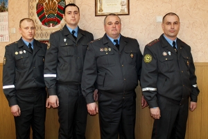 Старший инспектор по административной практике Василий Молчанов, инспек- торы ДПС Максим Штукин, Константин Бондарев, Олег Бородулькин (слева направо).