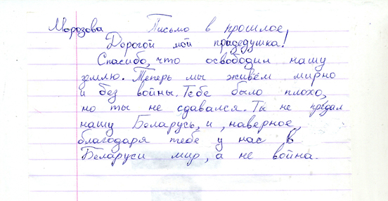 Письмо в прошлое написали ученики 5 « А» класса Россонской школы. Такой проект предложила реализовать наша редакция. Школьники попробовали написать письмо на фронт или в прошлое из 2017 года солдатам, защищавшим Родину в 1941-1945 годах, либо своим родственникам.