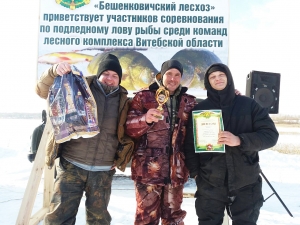 Д ню защитников Отечества и Дню женщин были посвящены соревнования среди команд лесного комплекса Витебской области по подлёдному лову рыбы, что прошли на Островенском озере Бешенковичского района. Благодаря тщательной подготовке, правильно выбранной технике и стратегии, а также, безусловно, опыту и удаче рыболовная дружина из ЧПУП «ЛМФ +» в составе четырёх человек смогла войти в тройку сильнейших командного первенства.