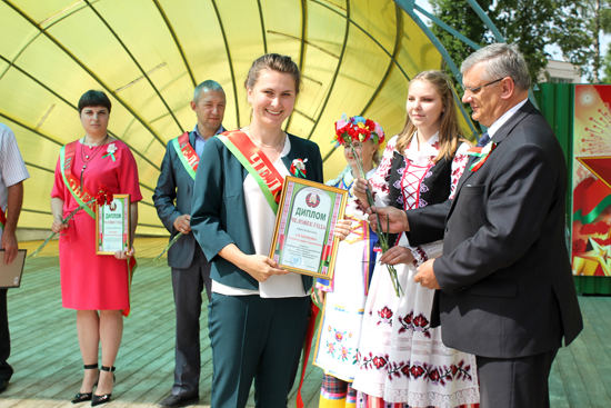Дальше праздник перетёк на улицы. На летней эстраде поздравления принимали люди года Россонщины, труженики, чьи портреты украсят районную доску почёта.