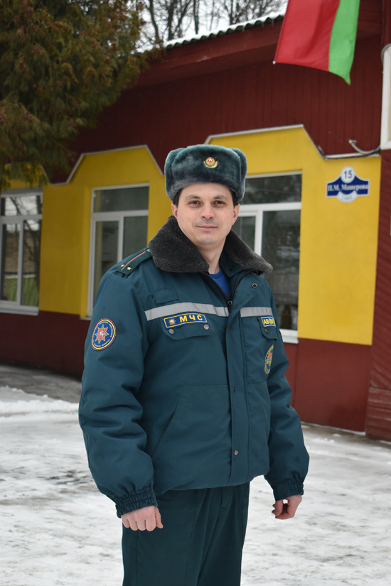 – В десятый класс я пришёл учиться в Россонскую школу в только что открывшийся профильный класс МЧС. Думаю, что это и определило дальнейшую судьбу. Конечно, в классе мы не жили по уставу, не было жёсткой дисциплины, но патриотическим воспитанием были наполнены все помыслы. Наш классный руководитель – Виктор Петрович Костюченко – всячески давал понять, что носить погоны – это высшее проявление патриотизма. Теперь я с ним полностью согласен. Куратором класса был Тадеуш Феликсович Пальчевский. Он рассказывал нам о службе в МЧС, о трудовых буднях спасателей. Кстати, из нашего класса работать в МЧС пришли трое: я, Владимир Сидорок и Борис Иванов. Правда, я не сразу сделал выбор в пользу службы в МЧС. После школы поступил в Полоцкий торгово-технологический колледж, который окончил с «красным» дипломом. Затем получил высшее экономическое образование в ПГУ. Армейская служба окончательно убедила, что всё -таки дорога ведёт в МЧС. В 2012 году пришёл в Россонский РОЧС подменным водителем. Тогда стажировал меня Павел Тимофеев – друг из параллельного класса, который пришёл сюда работать раньше.