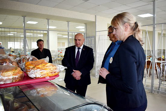 В Россонской школе Вячеслов Дурнов посмотрел, в каких условиях обучаются дети, чем их кормят в столовой, как укомплектованы лыжная база и спортивный зал.