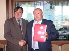 І таму было некалькі прычын: па-першае, Аляксандр Мікалаевіч адзначаў 50-гадовы юбілей, які суправаджалі шматлікія віншаванні і кветкі. Па-другое, за значны асабісты ўклад у сацыяльна-эканамічнае развіццё Расонскага раёна, актыўны ўдзел у грамадскай дзейнасці юбіляр быў адзначаны Ганаровай граматай Віцебскага абласнога выканаўчага камітэта. Каб уручыць заслужаную ўзнагароду, на Расоншчыну прыехаў член Віцебскага абласнога  выканаўчага  камітэта, першы намеснік старшыні Віцебскага гарадскога выканаўчага камітэта Алег Генрыхавіч Меркушаў (на здымку злева). Ён павіншаваў Аляксандра Мікалаевіча з юбілеем і ўзнагародай, а таксама  пажадаў здароўя і плённай працы на карысць Расонскага раёна.