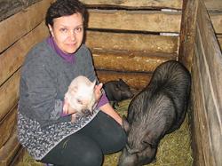 Удивительно, но когда я зашла в сарай, поделенный на отсеки для животных (станки) и хозяйственную часть, то не почувствовала характерного для обычных свиней запаха. Пахло сеном, а три свиноматки со своими детками и два хряка, каждые в отдельном чистеньком станке, мирно спали. «Это чудные животные, – рассказывает Ирина. – После хозяйства, которое у меня было раньше, я просто отдыхаю. За всё время мои подопечные ни разу не болели, так как представители этой породы обладают высоким иммунитетом. В зимний период на пять взрослых особей у нас ушло полтонны сена, которое служит не только подстилкой, но они его и поедают с удовольствием. В месяц на всех расходуется пять мешков сухого комбикорма. Так, взрослая свинка съедает его в сутки около килограмма. Любят тыкву, картофель, свеклу, топинамбур, яблоки – всё в сыром виде. Летом едят траву, побеги деревьев. В общем, всеядны и неприхотливы. Единственные два условия, которые нужно соблюдать, – чтобы всегда стояла свежая вода в поилках и не было больших сквозняков. Морозов же «вьетнамцы» не боятся вообще – зарываются в сено и спят себе мирно. Свиноматки никогда не поедают своих поросят, приносят два опороса в год, в среднем от 10 до 15 деток. Что ещё не маловажно для хозяев – представители этой породы обладают исключительной чистоплотностью, ходят в туалет строго в определённое место. Вынес совочком два раза в день – чисто и без запаха.