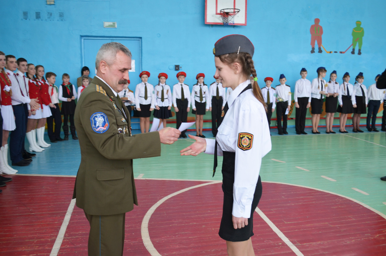 Как и полагается, начался смотр со сдачи рапорта командиров отрядов, который принимал подполковник в отставке, учитель Россонской школы Григорий Русинович.