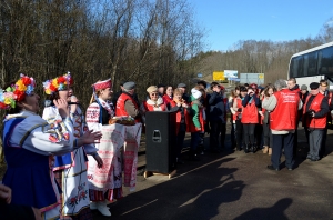 На россонской земле на границе с Российской Федерацией гостей встречали радушно. Глава района Александр Шубский, его заместитель Галина Подвительская приветствовали делегацию хлебом - солью, тёплыми словами. Отведав каравай, российская экспедиция отправилась в Клястицы.