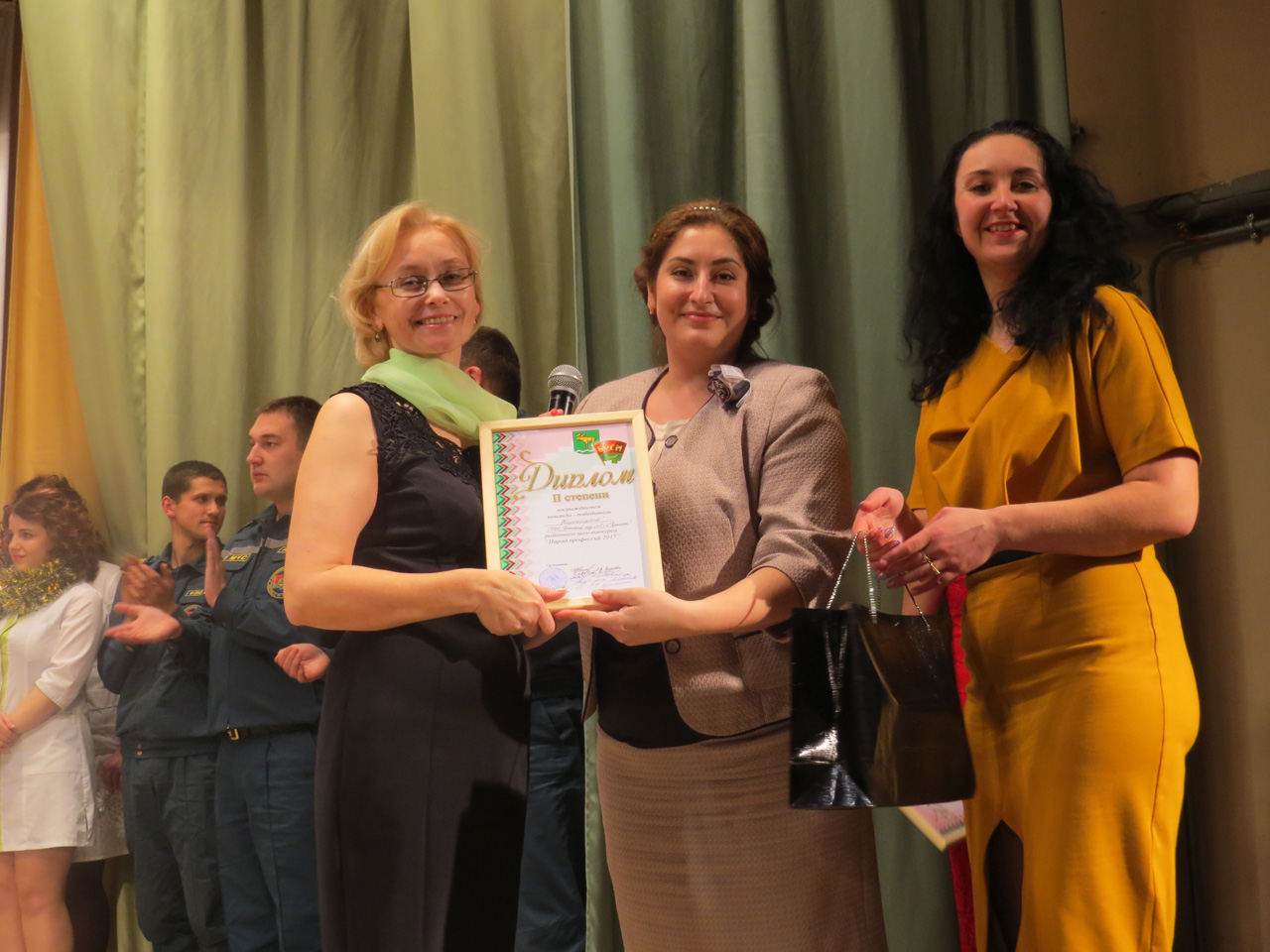 Подведя окончательные итоги, члены жюри поделились с участниками команд и зрителями впечатлениями от конкурса. А затем наступил самый волнующий момент – награждение. С максимальным количеством баллов в «Параде профессий» 2017 года одержали победу команды «Уголёк» Россонского РОЧС и «Импульс» Россонской ЦРБ. Второе место по праву заслужили члены команды государственного яслей-сада № 4 «Колокольчик». Много искромётного юмора подарили зрителям члены команды УП ЖКХ «Коммунальник». Не случайно дружина была награждена призом зрительских симпатий. «За креативный и творческий подход» Дипломом отмечено участие в конкурсе команды «Лесной дозор» ГЛХУ «Россонский лесхоз». Дипломы за выступления в «Минуте славы» и за «Корпоративный костюм» вручены, соответственно, командам «Зефир в шоколаде» Россонского райпо и «Волшебный мир искусств» Россонской детской школы искусств. Кроме того, не обошлось без подарков и подарочных сертификатов на различные суммы денег от отдела идеологической работы, культуры и по делам молодёжи райисполкома.
