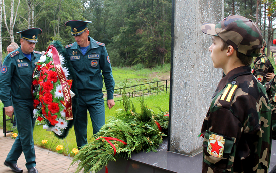 – Всего на Россонщине нашли свой последний приют более семи с половиной тысяч человек, погибших в годы Великой Отечественной войны. Известны имена только чуть более четырёх тысяч семисот, – отметил председатель Россонского райисполкома Владимир Быков. – Как дань уважения победителям, признания их великого Подвига проводится сегодняшнее мероприятие – открытие после реконструкции памятника на воинском захоронении в Гришино.