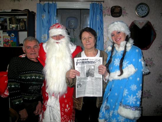 ...Зинаида Воротынская, сколько себя помнит, столько и выписывает «районку». А вот такого сюрприза не ожидала. Дверь открыла и чуть не обомлела. Говорит приболела, только «скорая» приезжала, вот и подумала, что врачи забыли чего. Несмотря на болезнь, бабушка рада и нам, и поздравлениям тоже. Надо же перед Новым годом выздоравливать. И мы попрощались с бабулей Зиной с надеждой на то, что хорошее настроение, которое подарили редакционные Дед Мороз с внучкой, поубавит хворей.
