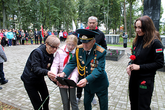 Апогеем митинга стала церемония установки памятной таблички с кюар-кодом, благодаря которой любой желающий может получить информацию о Мемориальном комплексе.