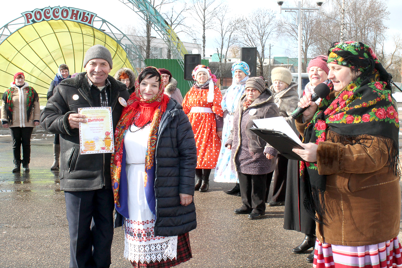 В праздничную субботу в Росонах площадка возле летней эстрады и Центра культуры превратилась в огромную зону отдыха и развлечений: Россонцы отпраздновали Масленицу! Сельские подворья представили традиционные блюда – блины. Здесь каждого угощали сладостями и вкусными солнышками.