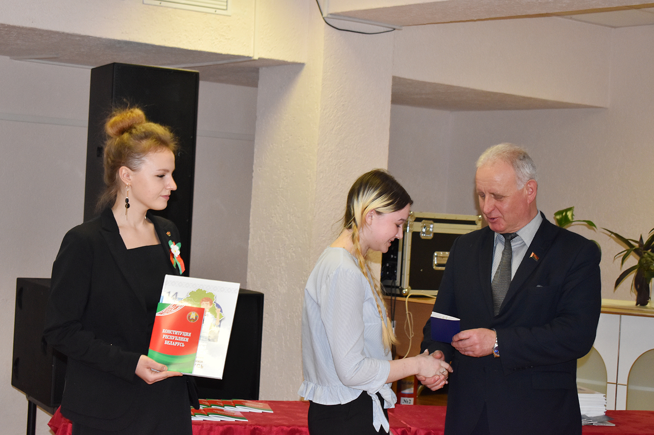 Председатель Россонского райисполкома Владимир Быков отметил, что получение документа – это первый серьёзный шаг во взрослую жизнь. Он пожелал бережно относиться к документу и достойно нести высокое звание гражданина Республики Беларусь, хорошо учиться, получить образование и вернуться в наш район.