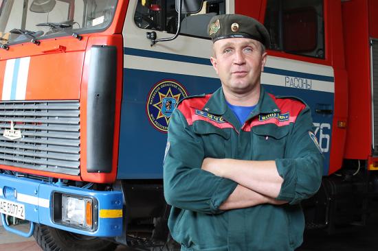 Владимир Сидорик (на снимке) – простой пожарный, «тушила». С него берут пример, у него спрашивают совета. «На пожарах работает смело, проявляя разумную инициативу», – говорит о нём начальство. Правда, бессчётное количество «боевых выездов» превратило весь героизм его профессии в банальную рутину.