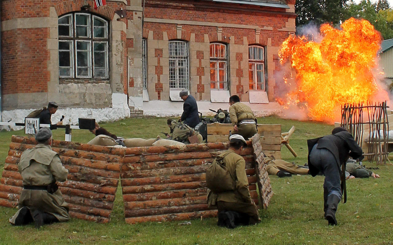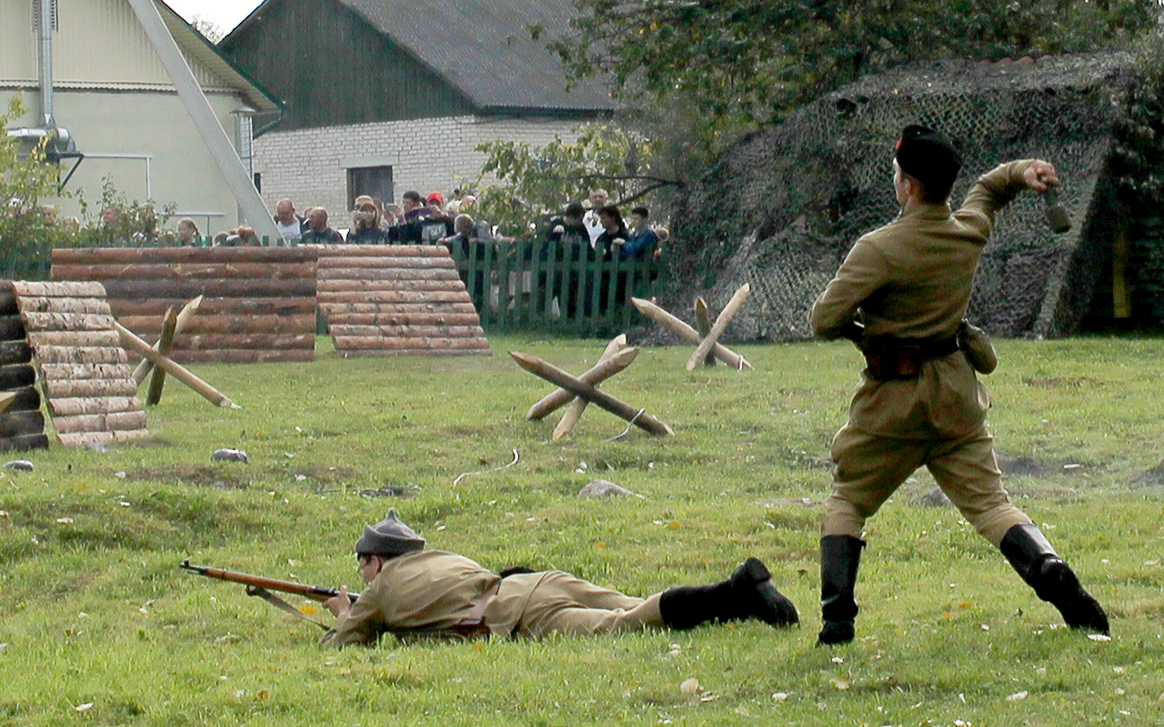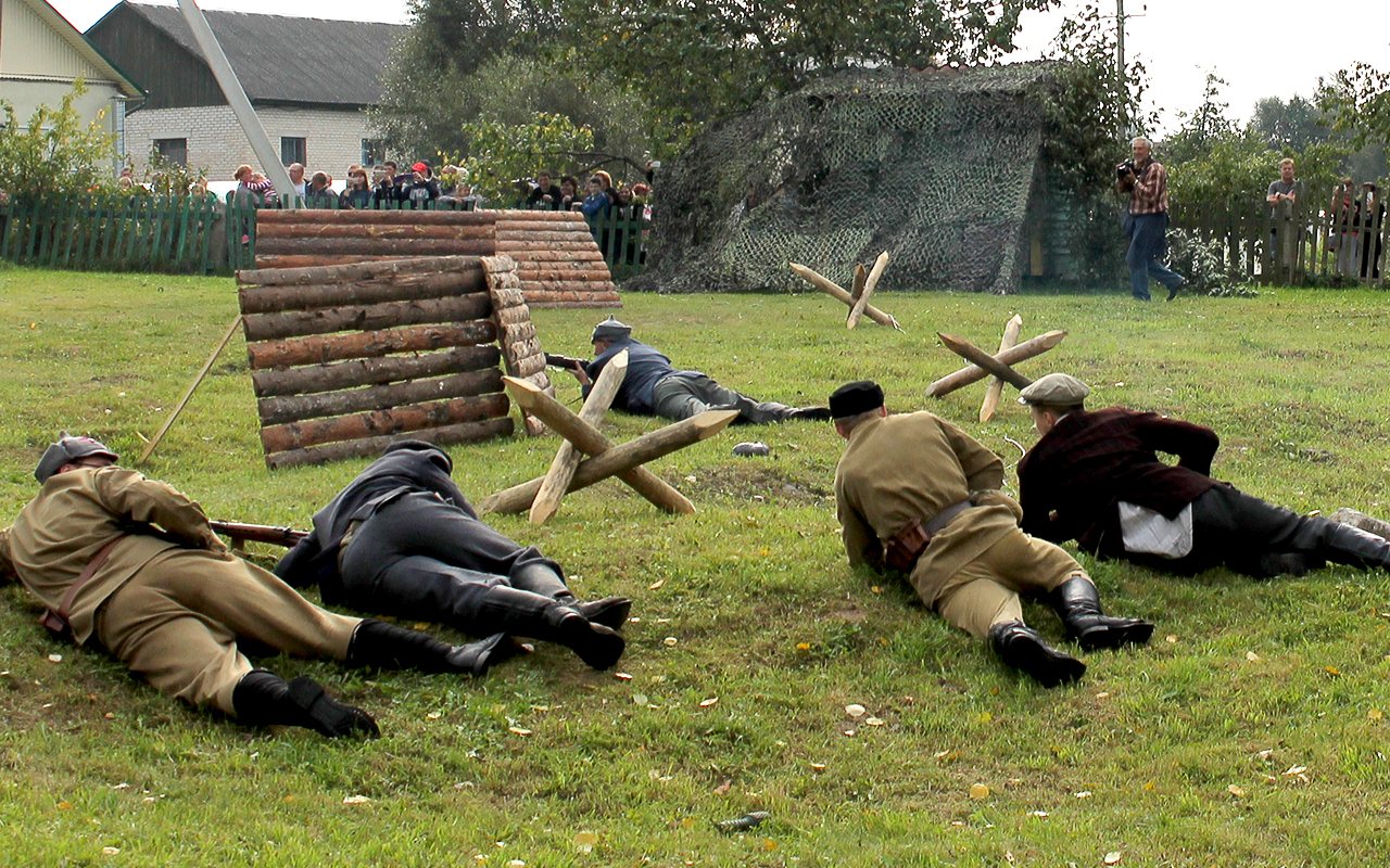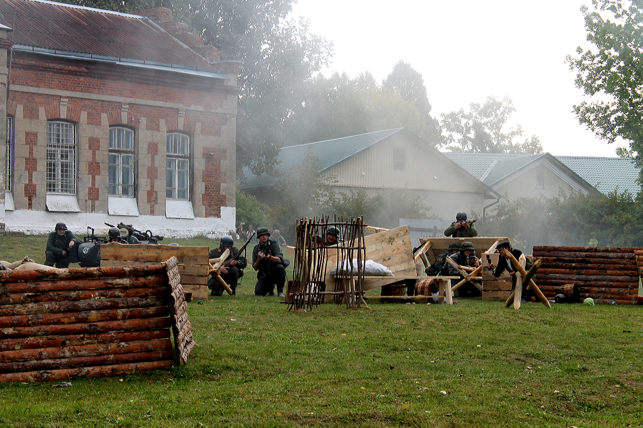 События 76-летний давности воплотили в жизнь и максимально приблизили к реальным реконструкторы из Витебского областного общественного объединения военно-исторической реконструкции «Друзья по оружию» вместе с минской группой «Эпоха» и военно-историческим клубом «Смоленский рубеж».