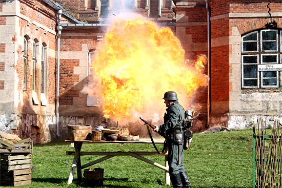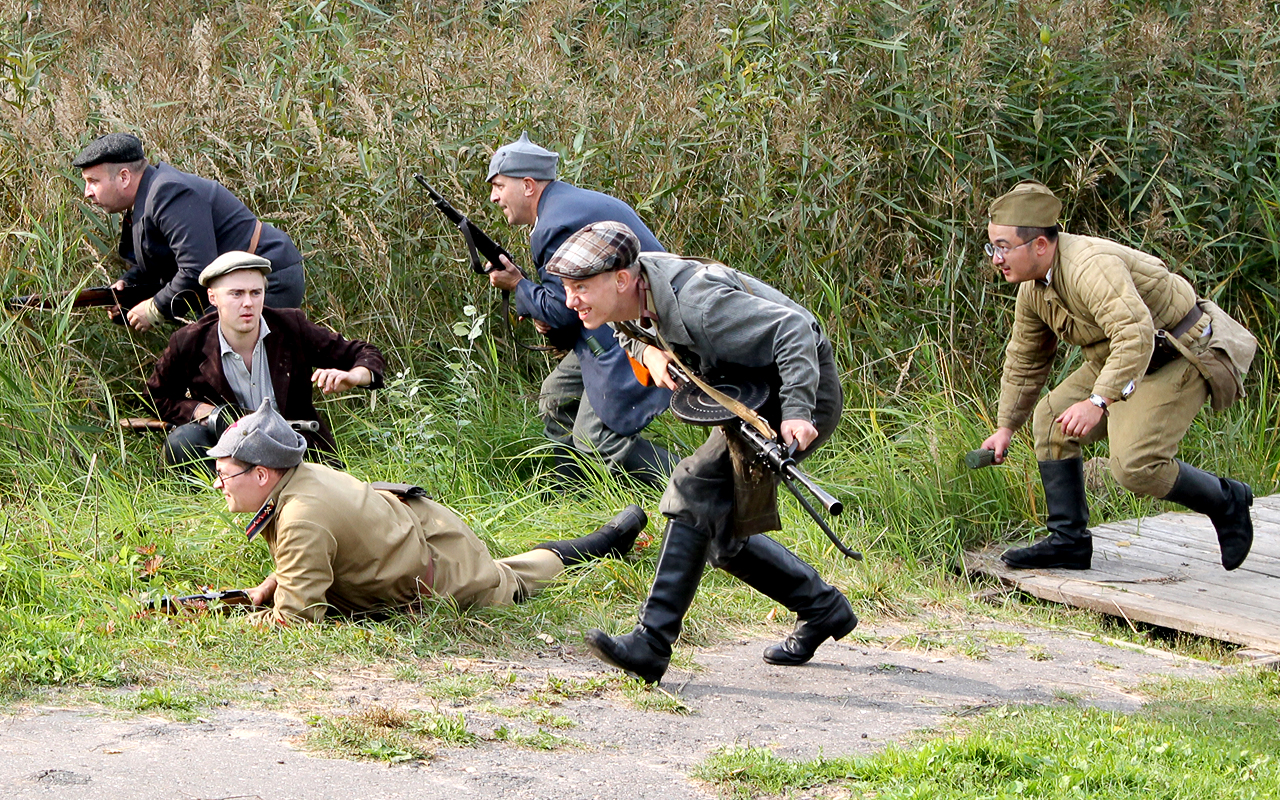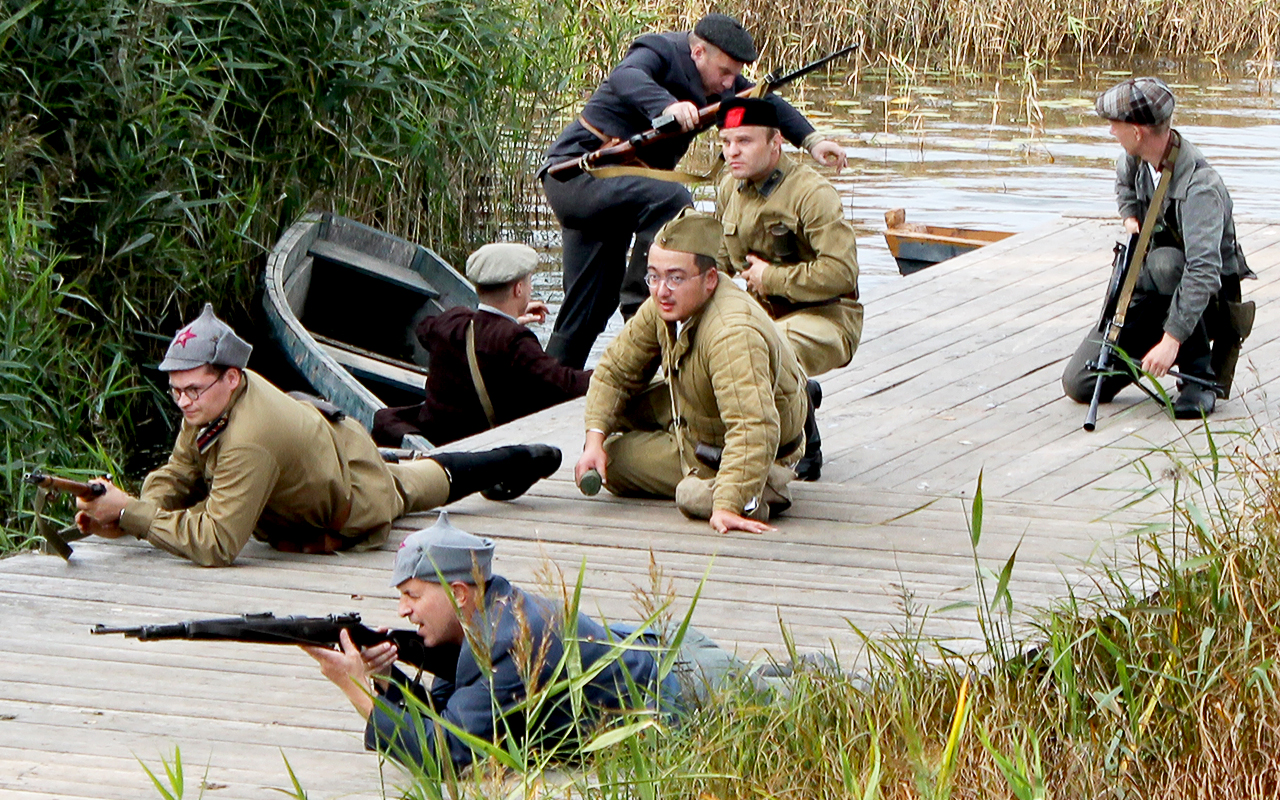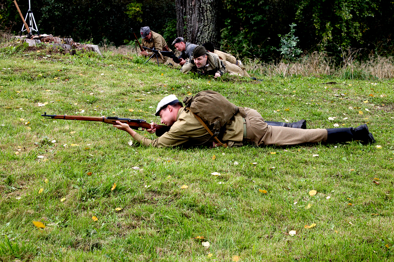 События 76-летний давности воплотили в жизнь и максимально приблизили к реальным реконструкторы из Витебского областного общественного объединения военно-исторической реконструкции «Друзья по оружию» вместе с минской группой «Эпоха» и военно-историческим клубом «Смоленский рубеж».