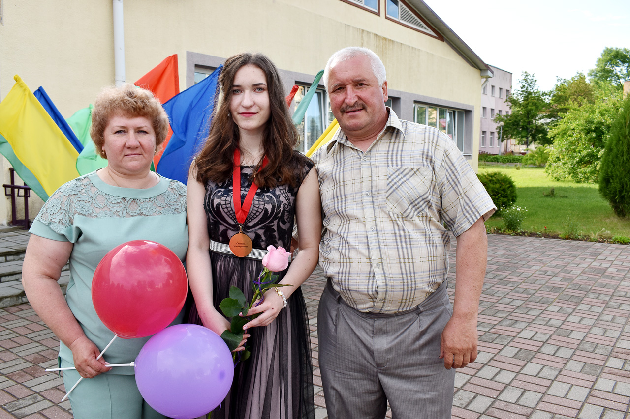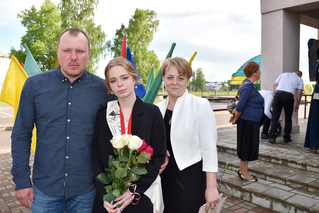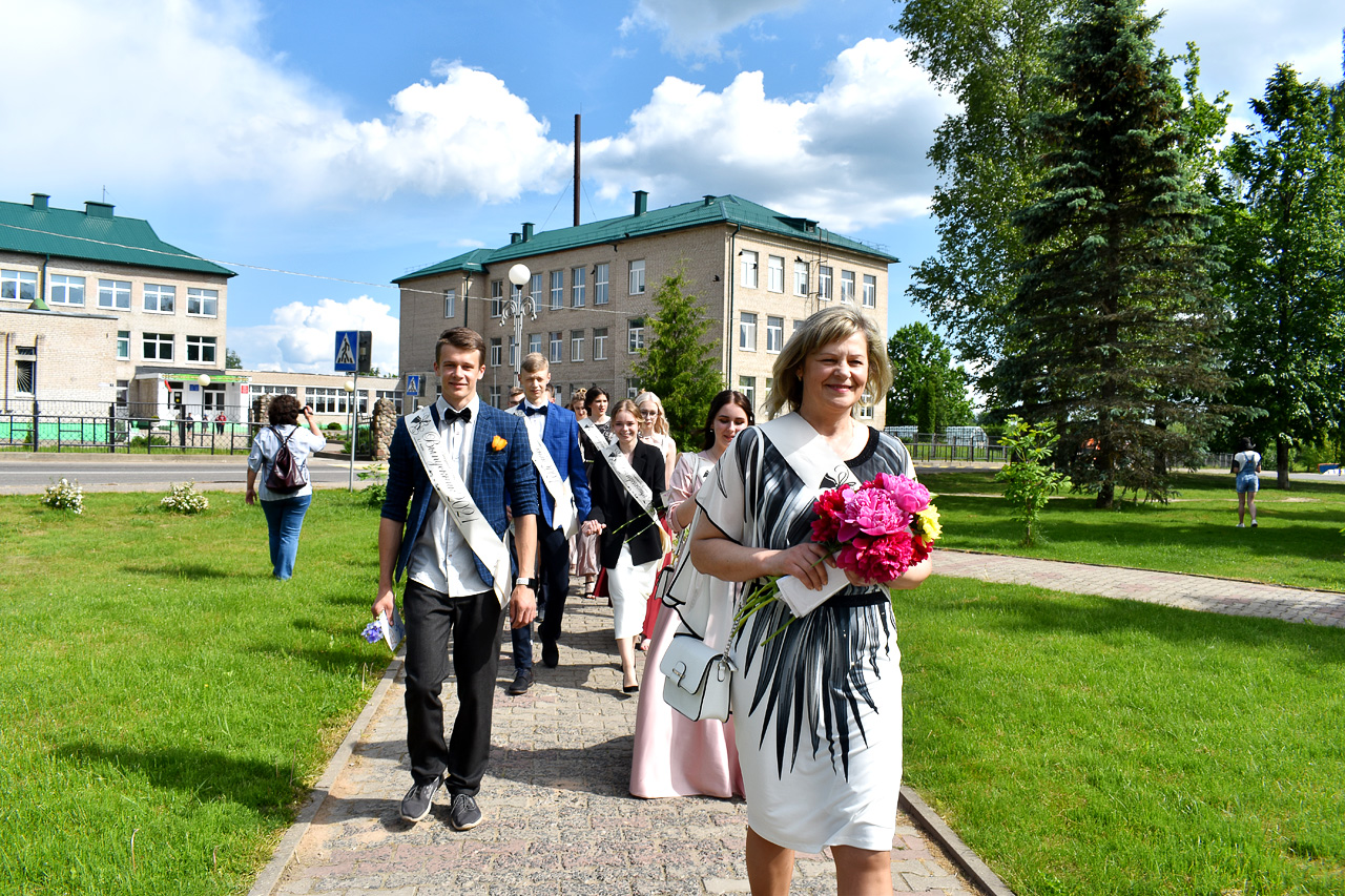 Прощальный вечер выпускников Россонской школы начался с праздничного шествия в Мемориальный сквер и возложения цветов к памятнику.