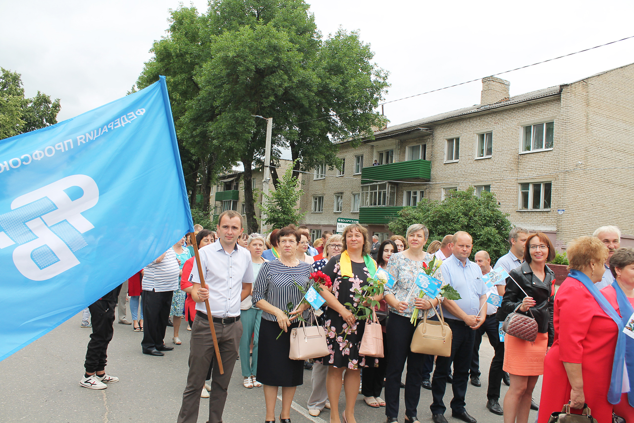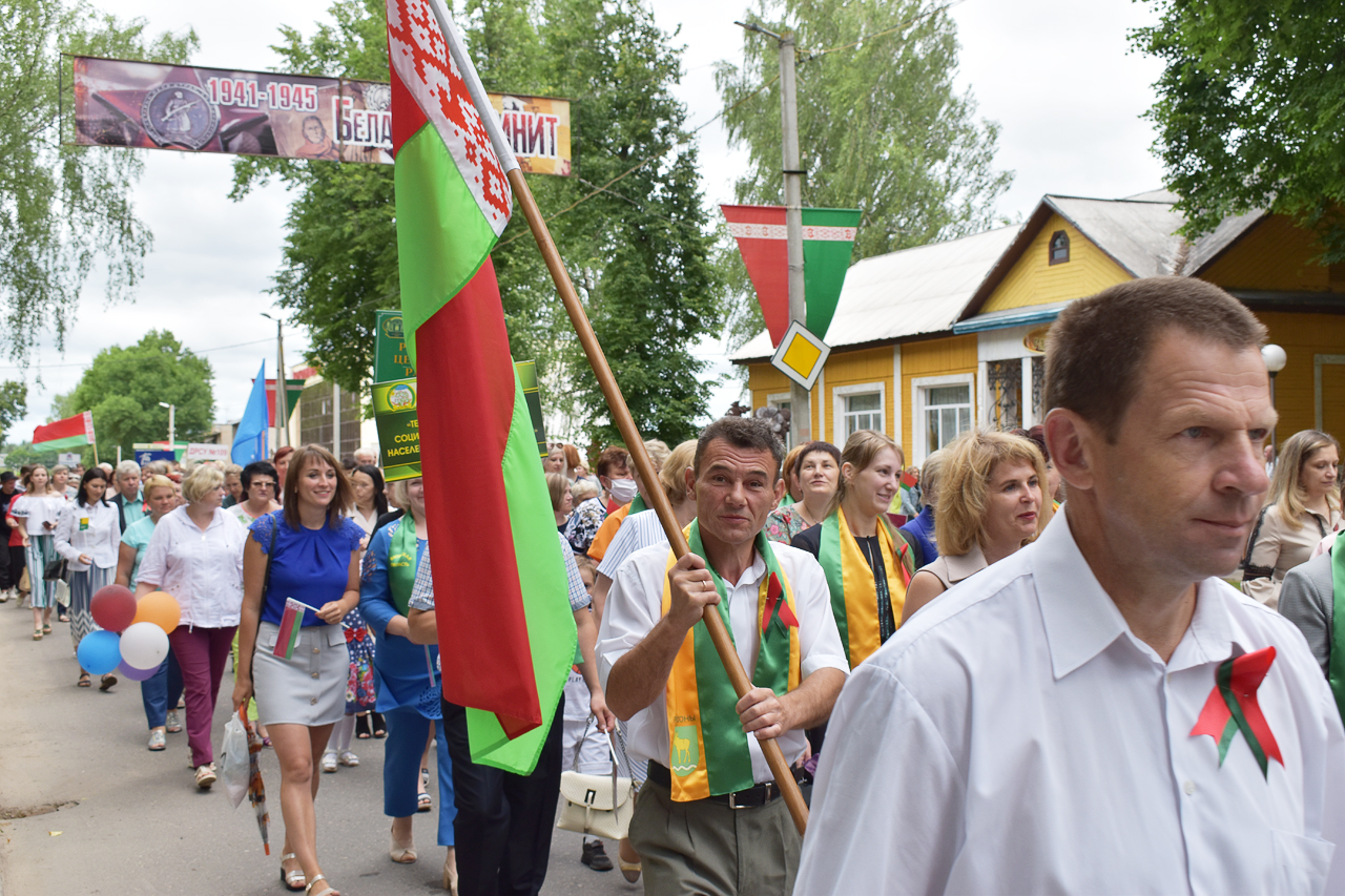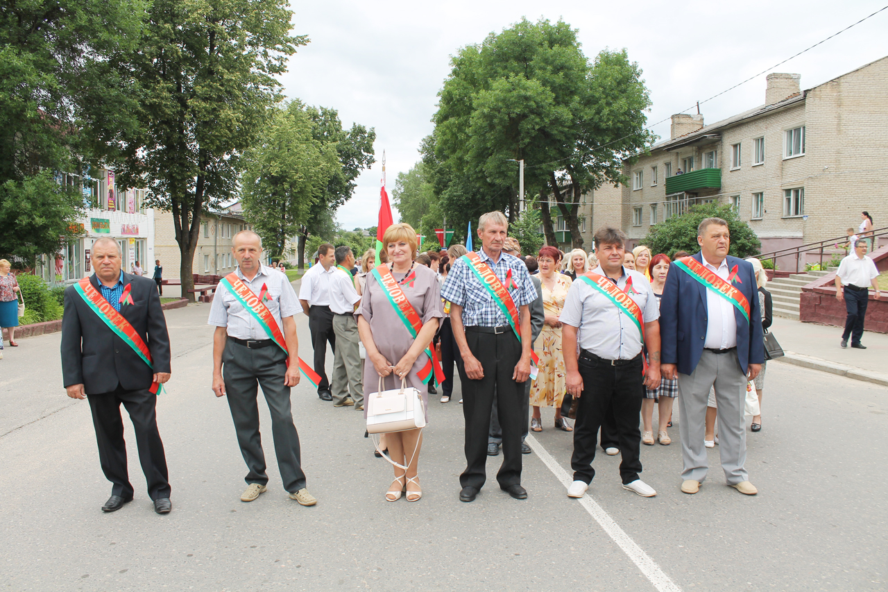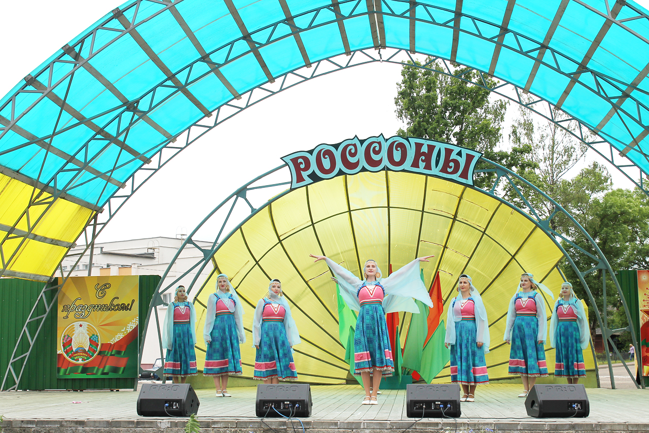 Праздничная программа в этом году началась шествием с государственным флагом Республики Беларусь по улице Советской. Огромное полотнище красно-зелёного цвета размером четыре на восемь метров пронёс молодёжный актив района. Юноши и девушки в костюмах с национальной символикой гордо держа в руках государственный флаг, ловили взгляды благодарных россонцев, которые по разным причинам не смогли попасть на праздник. Земляки махали руками из окон и балконов квартир, приветствовали молодёжь на улице.