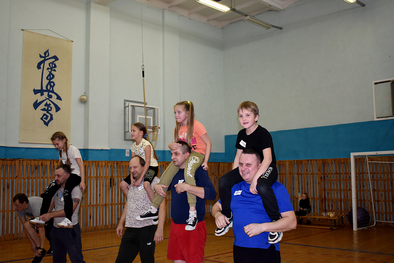 На каждом этапе программы появлялись и безоговорочные лидеры. В конкурсе «Обводка с мячом» лучший результат продемонстрировали Роман и Евгений Таяновичи. Самыми умелыми наездниками оказались сразу несколько семей – Ярмоленко, Сморгуновы, Лапковские и Косаревские. С заданием «Кочки» ловко справились Павел и Александр Ярмоленко. Самым далеко летающим самолётиком оказался бумажный экземпляр Артемия и Олега Лапковских…
