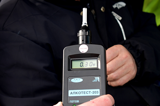 Милиционеры по базе данных проверяют, за какие "провинности" и когда Александр был "замечен". Проводят медицинское освидетельствование. Алкотестер показывает, в крови 0,6 промилле. Пока велосипедист "отделался" только предупреждением, но если подобное повторится в течение года, то придётся раскошелиться на приличный штраф.