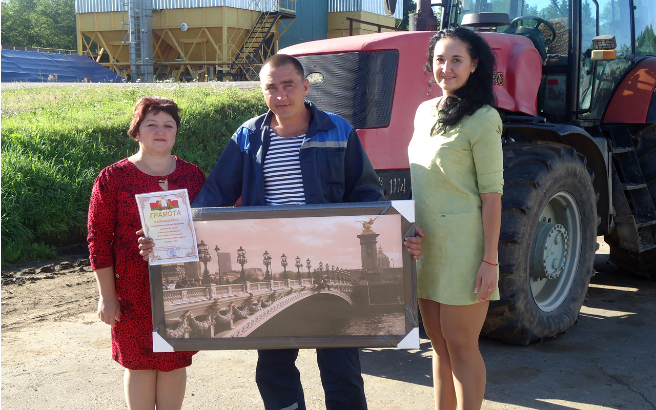 Поздравить молодого человека и вручить ему подарок приехала главный специалист отдела идеологической работы, культуры и по делам молодёжи райисполкома Наталья Лукашенко. «Виновника торжества» гостья из райцентра застала на машинном дворе. В окружении других аграриев хозяйства Наталья Николаевна вручила победителю Грамоту и подарок. Поздравить лучшего молодого механизатора района пришла и заместитель директора по идеологической работе ОАО «Клястицы» Снежана Селезнёва.