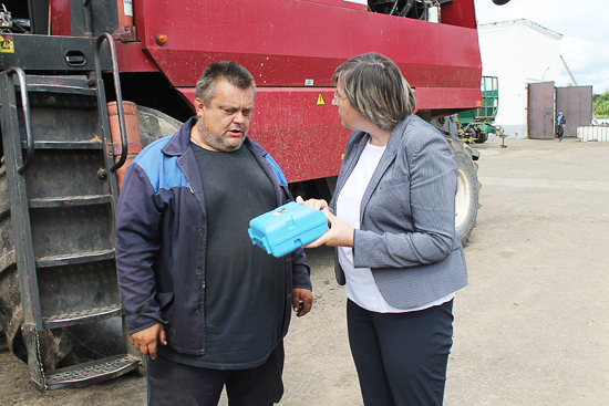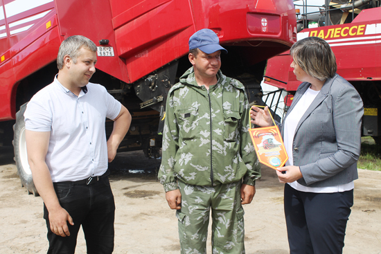 – Ваша уборочная техника готова к жатве по всем параметрам? – спрашивает у него Ольга Ивановна. И, получив утвердительный ответ, просит предоставить аптечку, показать огнетушители, водительские права и т.д. На первый взгляд, всё соответствует требованиям нормативных документов.