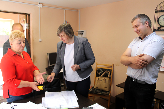 Первая остановка – возле заправочной. Здесь должностных лиц интересует проведение освидетельствования механизаторов на предмет нахождения в состоянии алкогольного опьянения и ведение соответствующей документации. Старший диспетчер автомобильного транспорта Снежана Селезнёва по первому требованию предоставляет документы, после чего Ольга Ивановна внимательно изучает журнал с подписями механизаторов о прохождении освидетельствования.