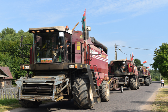 Техника выстроилась в колонну. Четыре красных гомсельмашевских «Палесся» выдвинулись в путь.