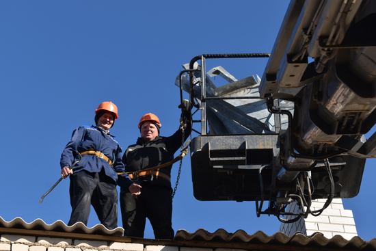 – Раньше я на старой автовышке работал, но она своё отжила. В прошлом году организация получила новую и вверила мне. Добротная машина: и в управлении лучше, и высоту другую берёт, пятиэтажку легко. Если надо и выше – на 24 метра выдвигается, – рассказывает между делом Александр Кондратьев и поднимает ввысь люльку с шифером.