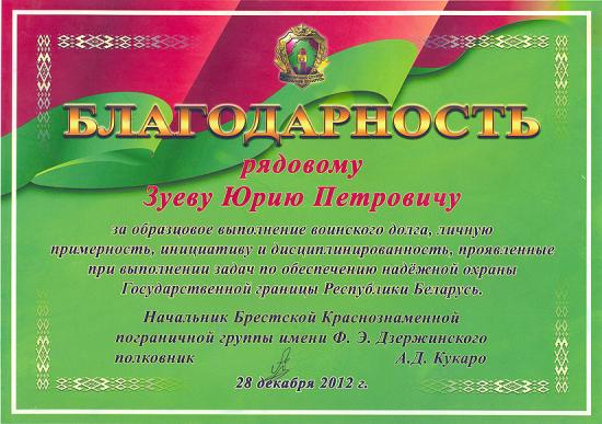 – В армию я уходил не «желторотым юнцом». Успел поработать, закончил Себежский сельскохозяйственный техникум, так что на руках был диплом юриста. 22 года, считаю, солидный возраст, жизненного опыта хватало, необходимо было получить и военные навыки, – начал свой разговор о службе Юрий. – Сначала мне предложили внутренние войска, но если признаться честно, в милицию не горел желанием идти. Представление о пограничных войсках у меня уже было: брат Михаил проходил срочную службу на пограничной заставе в Бресте. 19 июля 2011 года стало отсчётом моего пребывания в Вооружённых силах. Сначала это была войсковая часть в Дзержинске.
